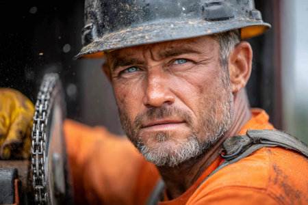 AI Generated. Ruggedly handsome miner worker his weathered face