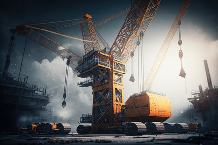 large construction site crane in heavy industry background 3d render digital illustration, created with generative ai