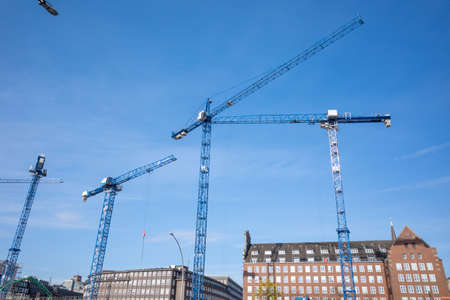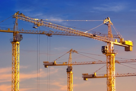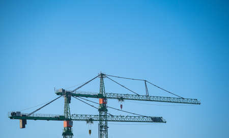Construction cranes, Tower Cranes against the blue sky with clouds