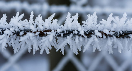 Macro shot of ice crystals forming on a branch in the chilly winter air AI Generated.