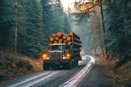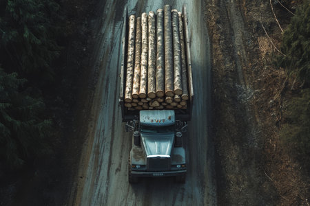 Loaded Logging Truck on a Dusty Path