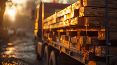 A truck loaded with raw wood materials arriving at the production facility