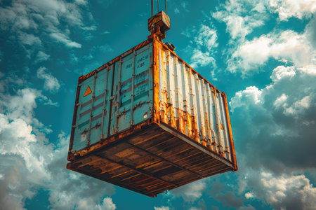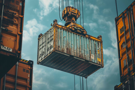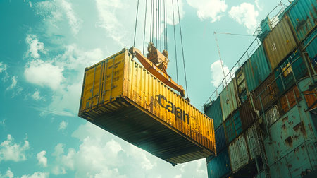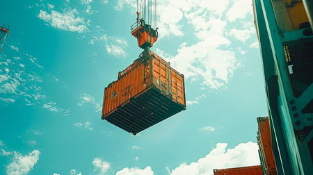 Impressive high quality image of heavy duty crane effortlessly lifting large container into the air