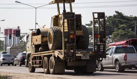 Private Hitachi Cat on truck. On road no.1001, 8 km from Chiangmai city.