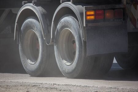 tires of a truck on a muddy road at the construction site