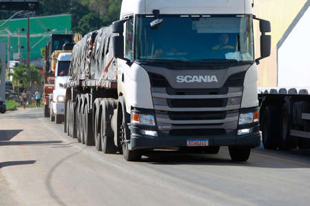Presidente Tancredo Neves, Bahia, Brazil - June 1, 2022: cargo transport truck seen traveling on federal highway BR 101 in southern Bahia.