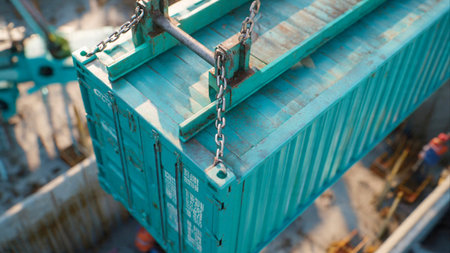 Close-up of a freight container with chain. Cargo transportation.