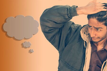 Confused thoughts in my head. Inability to Express Your Thoughts. Copy space for text.