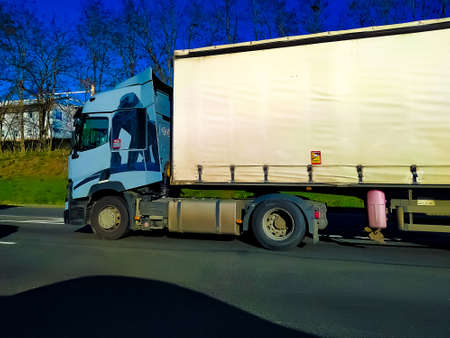Dortmund, Germany - December 28, 2021: Truck on the freeway to Frankfurt at Dortmund, Germany on December 28, 2021