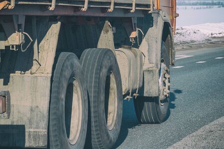 Truck wheels on the road in motion