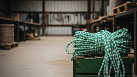 climbing ropes coiling process captured in close-up mode, created with generative ai