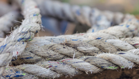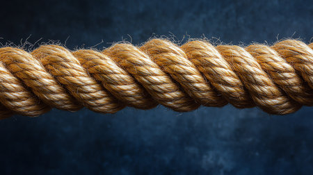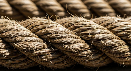 A detailed macro shot reveals the intricate weave of a heavy-duty rope, its natural fibers twisted together to create immense strength.