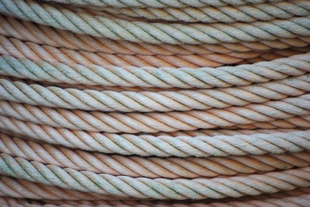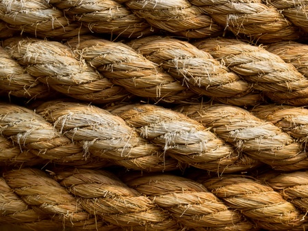 Detailed texture of a strong, natural fiber rope bundle, showing its woven strands.
