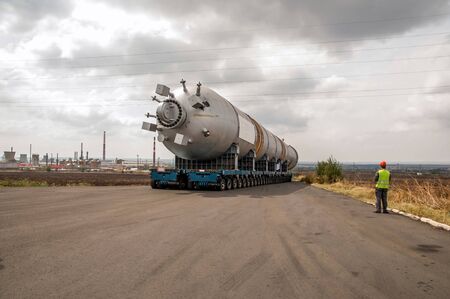 Heavy duty trucks hauling large industrial components along a highway, demonstrating logistics and heavy cargo transportation