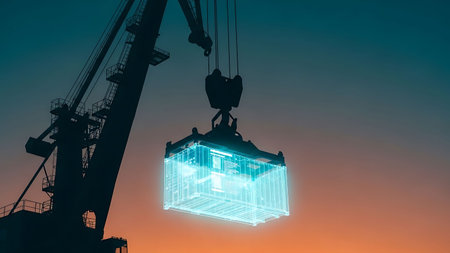 Impressive high quality image of heavy duty crane effortlessly lifting large container into the air