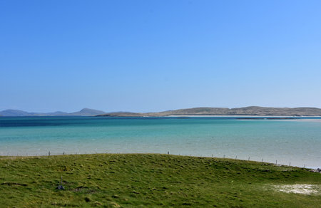 A spectacular beach in the north of Scotland. Luskentyre sands. Isle of Harris, Scotland. Vacation holiday banner