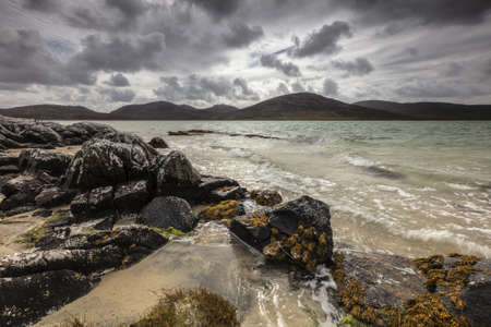 A dark scenery of a sea shore on a glomy day in Isle of Lewis, Outer Hebrides, Scotland, UK