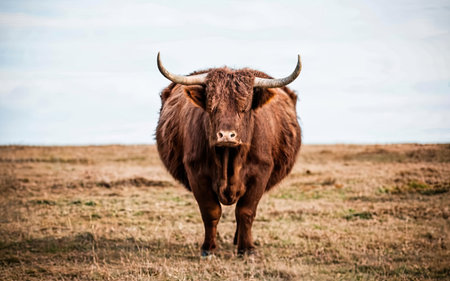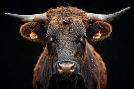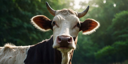 cow close-up, cattle, livestock, the muzzle of an animal, head with horns, Generative AI