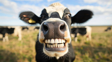 cow's infectious smile in meme style, bringing laughter and delight to all who see it.