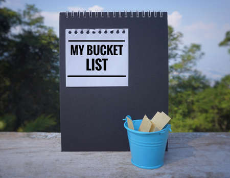 Inspirational and conceptual - ‘My bucket list ‘ written on a white sticky note. With vintage styled background.