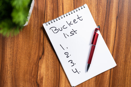 Two hands gently cradle a note that boldly displays the word BUCKETLIST, set against a soft, white background. This intimate scene evokes a sense of aspiration and adventure, inviting viewers to reflect on their dreams and goals.
