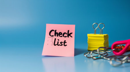 A checklist pages pinned to board, featuring tasks and reminders. organized layout conveys sense of productivity and planning