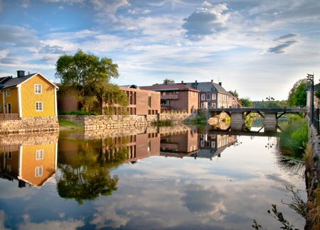 View of old Porvoo, Finland. Beautiful city autumn landscape with colorful wooden buildings.