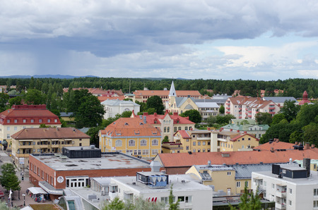 Soderhamn, Sweden - July 18 2017. View over the small town of Soderhamn between Stockholm and Sundsvall from it's observation tower, Oscarsborg.