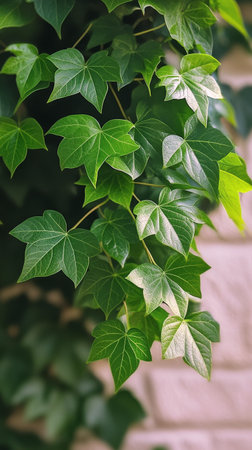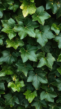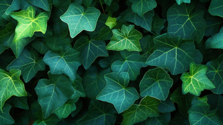 A close-up view of vibrant green ivy leaves showcasing intricate patterns and textures. Perfect for nature-themed projects emphasizing growth and tranquility.
