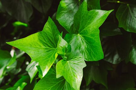 Green ivy background. Common ivy or Hedera helix is a clinging and climbing evergreen vine plant.