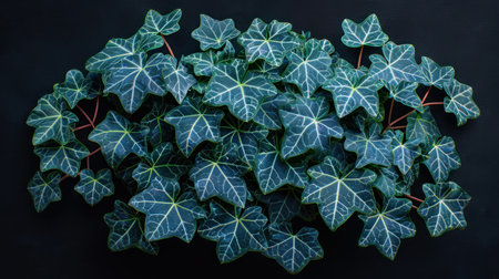 Vibrant ivy leaves spread gracefully, creating a striking contrast with the dark backdrop.