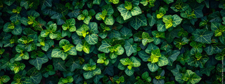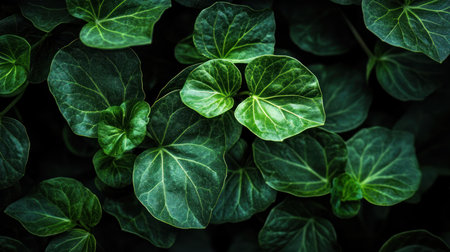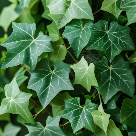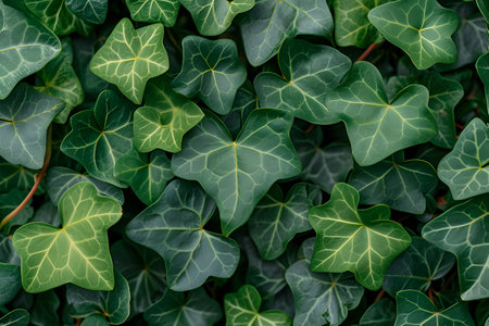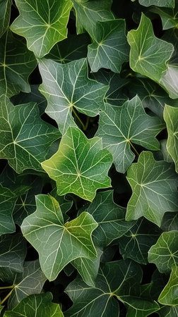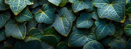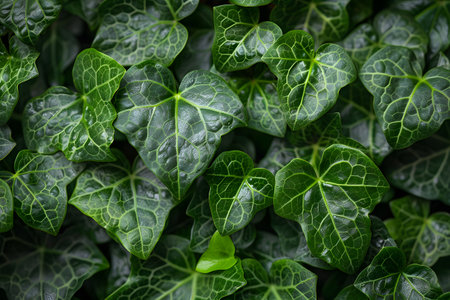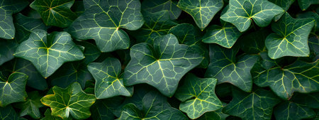 Close-up of lush green ivy leaves reflecting natural light, showcasing intricate vein patterns and vibrant color. perfect for nature-themed designs, backgrounds, or posters celebrating the beauty of plant life. Generative AI