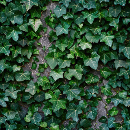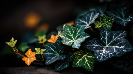 Vibrant ivy leaves spread gracefully, creating a striking contrast with the dark backdrop.