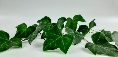 Green ivy leaves on a white background.