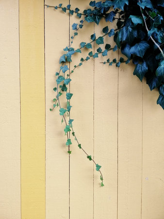 Ivy climber plant on the white wall close up view
