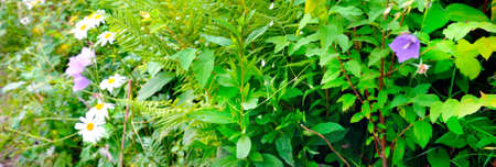 Flowers and leaves in nature. Floral colorful spring flower background.