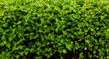Closeup picture of wall from green leaves or green bushes. Green box hedge background with green leaves.