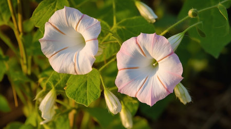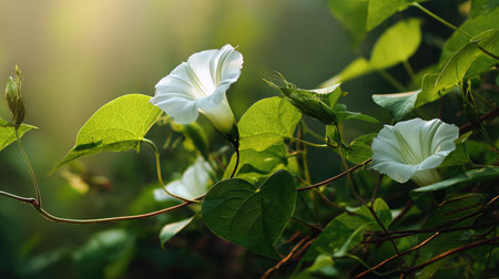 White morning glory flower and lush new leaves UK