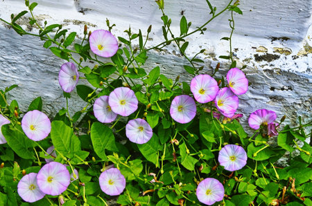 flowers white pink convolvulus on the edge of the forest