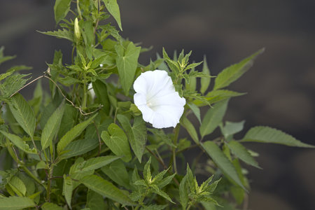 white flower of Ipomoea bindweed close up