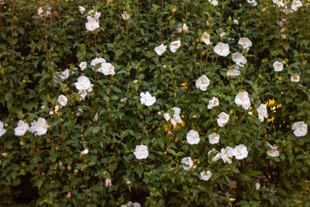 White flowers birch bindweed grow in the garden.