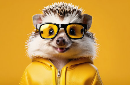 cool hedgehog in sunglasses. adorable animal on solid yellow background
