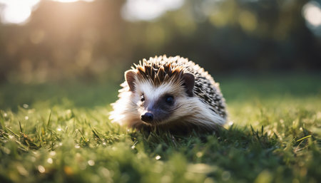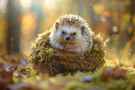 A charming hedgehog with striking quills and an inquisitive expression enjoys a moment of exploration in its cozy environment, inviting joy and affection.