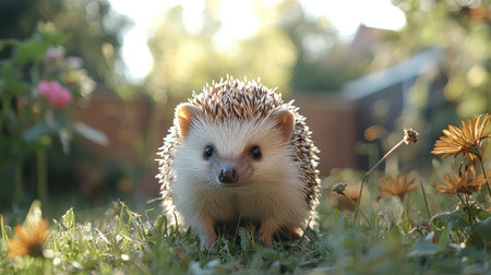 A small hedgehog with soft quills curiously examines its vibrant surroundings.