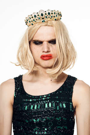 Portrait of drag queen Man dressed as Woman, isolated on white background