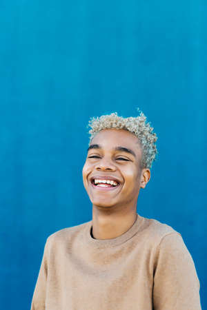 Portrait of an smiling young latin american male against a blue background