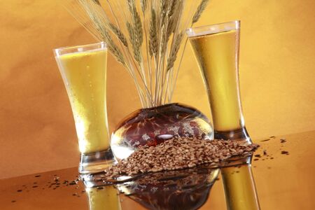 Light wheat beer and a bunch of wheat