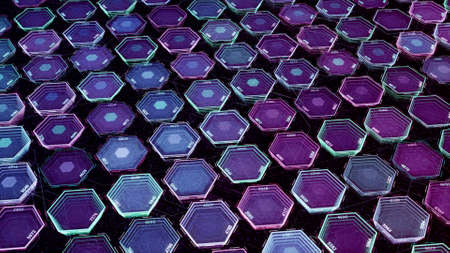 Hexagonal scientific and technological materials, 3d rendering. Computer digital drawing.