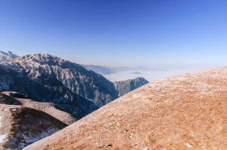 Mountain landscape covered in clouds on top of Wugong Mountain in Jiangxi, China