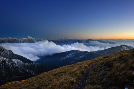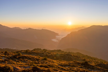 Beautiful sunrise of Hehuanshan North Peak Trail at Hehuanshan National Forest Recreation Area in Nantou Taiwan,